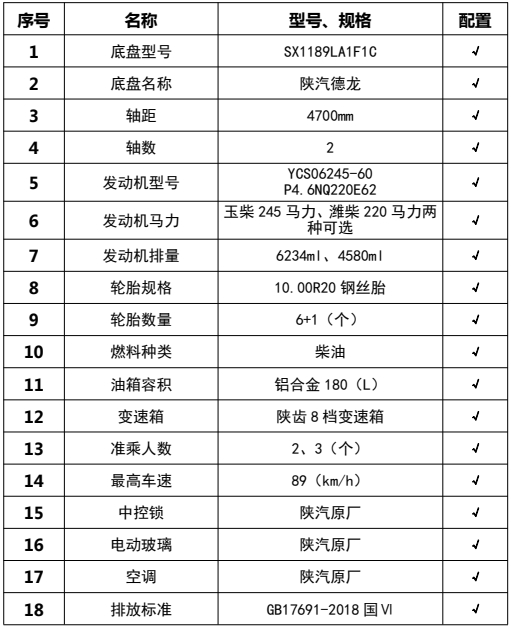 | 車(chē)輛主要配置 | |||