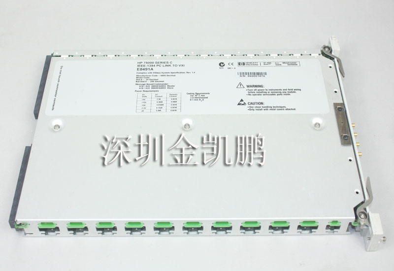 The Agilent E8491A IEEE-1394 PC link to VXI is a C-size, 1-slot, message-based VXI module, providing a direct connection from your PC to a VXI mainframe via the industry standard IEEE-1394 bus (FireWire). The Agilent E8491A is a cost effective choice for high-speed data acquisition applications moving large blocks of data. Users now have an affordable VXI solution for their test applications when the Agilent E8491A is used with Agilent'' new E8400 mainframe series.