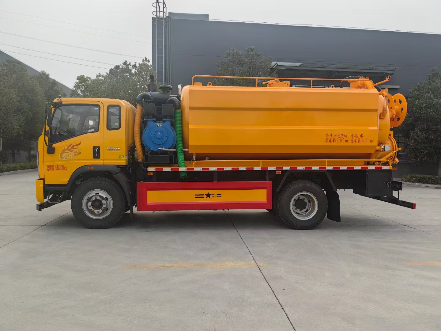 | 上裝配置 | 吸污罐容積約11立方,清水箱約3.5立方,污水罐8mm制作,清水箱4mm制作,采用品孚255流量高壓泵,帶60米22號(hào)高壓管,液壓卷盤(pán)。 污水罐約11立方:375副發(fā)SK-30水循環(huán)泵,水循環(huán)泵水箱為碳鋼材質(zhì),頂部防溢閥,后門(mén)處150球閥排污,100球閥直通罐頂吸污,作業(yè)適用場(chǎng)景最廣泛工作最高效! | ||