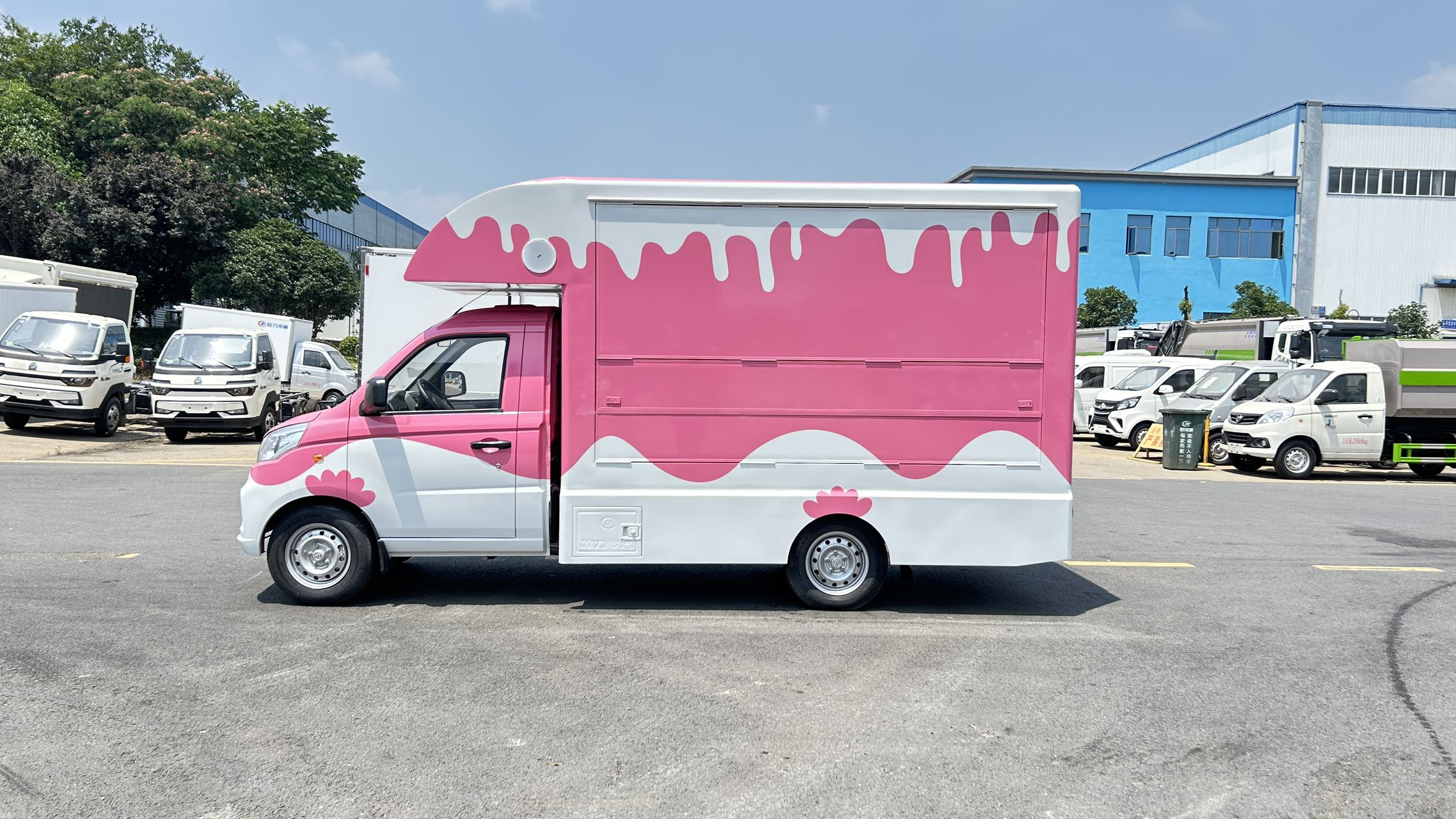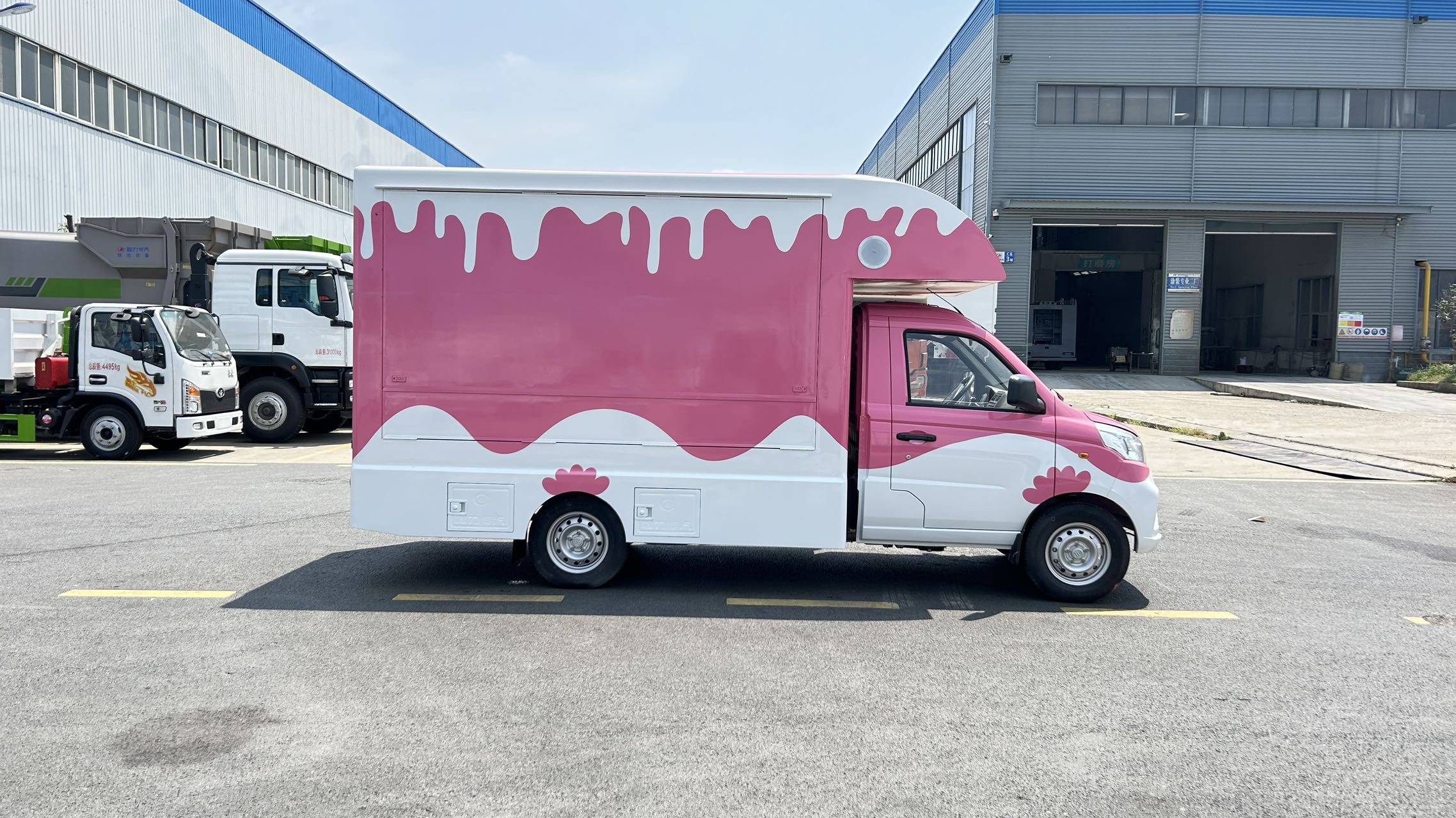 | 上裝配置 | 1,箱體材質(zhì):矩形方管骨架,冷板蒙皮結(jié)構(gòu),翻板采用內(nèi)外彩鋼板,中間高性能保溫板,側(cè)板整體復(fù)合,輕量化,保溫隔熱。整體車身顏色為白色,可定制車身各種顏色彩條拉花,或各種噴涂樣式,(選裝內(nèi)部不銹鋼飾面板) 2,箱體結(jié)構(gòu): (1)箱體鴨嘴額頭設(shè)計(jì),帶儲(chǔ)物功能。 (2)箱體兩側(cè)上翻板,帶下翻吧臺(tái)。 (3)地板為防滑鋁花紋板,箱體裙邊包圍,帶檢修艙門,工具柜。 | ||